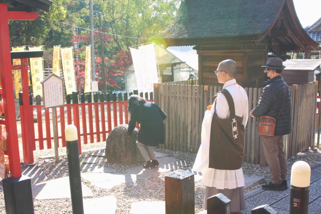 暦の上では「大雪」にあたり、本格的な冬の到来かと思いきや、季節外れの暖かい陽光が差し込んだ12月7日。縁の末社において135回目となる「縁の末社で両縁参り」が実施され、事前申込をされた多くの参加者が両天王さまに参拝しました。