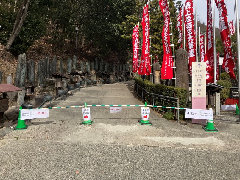 旧本殿へのお参りは、縁の末社や金運堂の東側の道から上がっていただくようお願い致します。