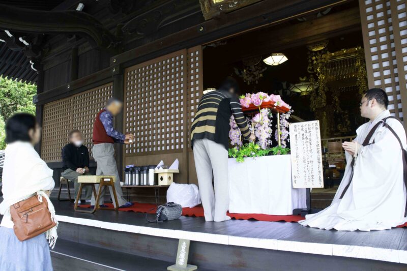 法要後は本堂前に花御堂を安置し、甘茶とお茶菓子を振る舞います(11時前後から14時まで)。お坊さんとお話ししながら、甘いものをいただいてほっこりとするひととき…。春の良き日に仏恩に感謝し、お釈迦さまの誕生日をお祝いしましょう。