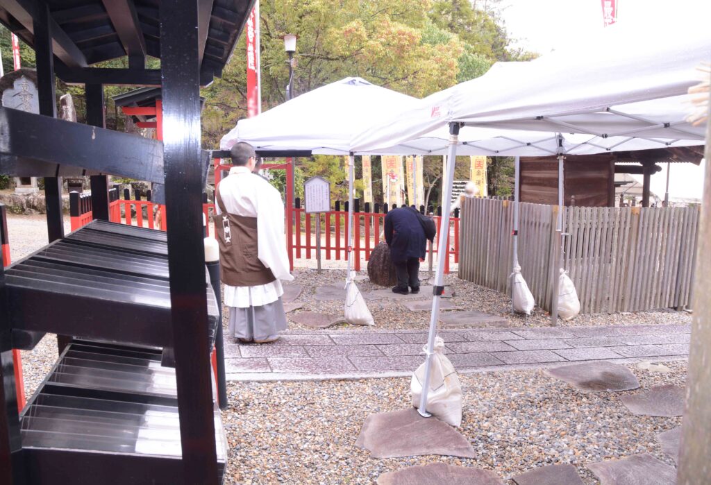 また、雨に濡れないよう、お参りに時間のかかる撫で石周辺にはテントが張られました。