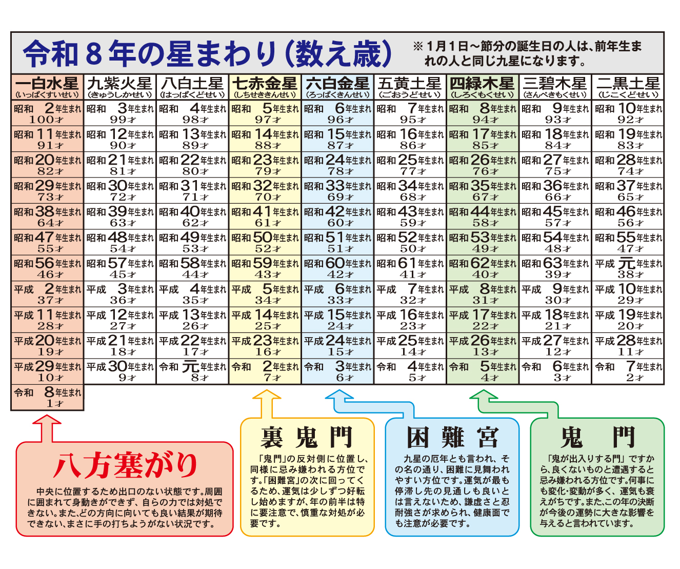 その星が八方向と中央の、合計九つの方位に一年ごと巡っていくのですが、